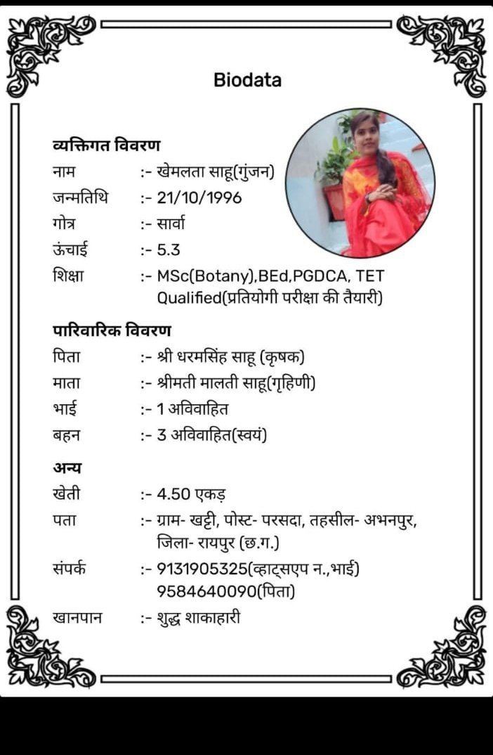 नाम – लुकेश साहू पिता का नाम – संपत लाल साहू माता का नाम – श्रीमति सुनीता साहू माता का कार्य – गृहणी रंग – सांवला उँचाई – 5.5″ पढ़ाई – M.A योगा , पोस्ट ग्रेजुएट डिप्लोमा ईन कम्प्यूटर एप्लिकेशन कार्य – योग टीचर , प्राइवेट जॉब पता – माना एयरपोर्ट टेमरी रायपुर गोत्र – … Read more